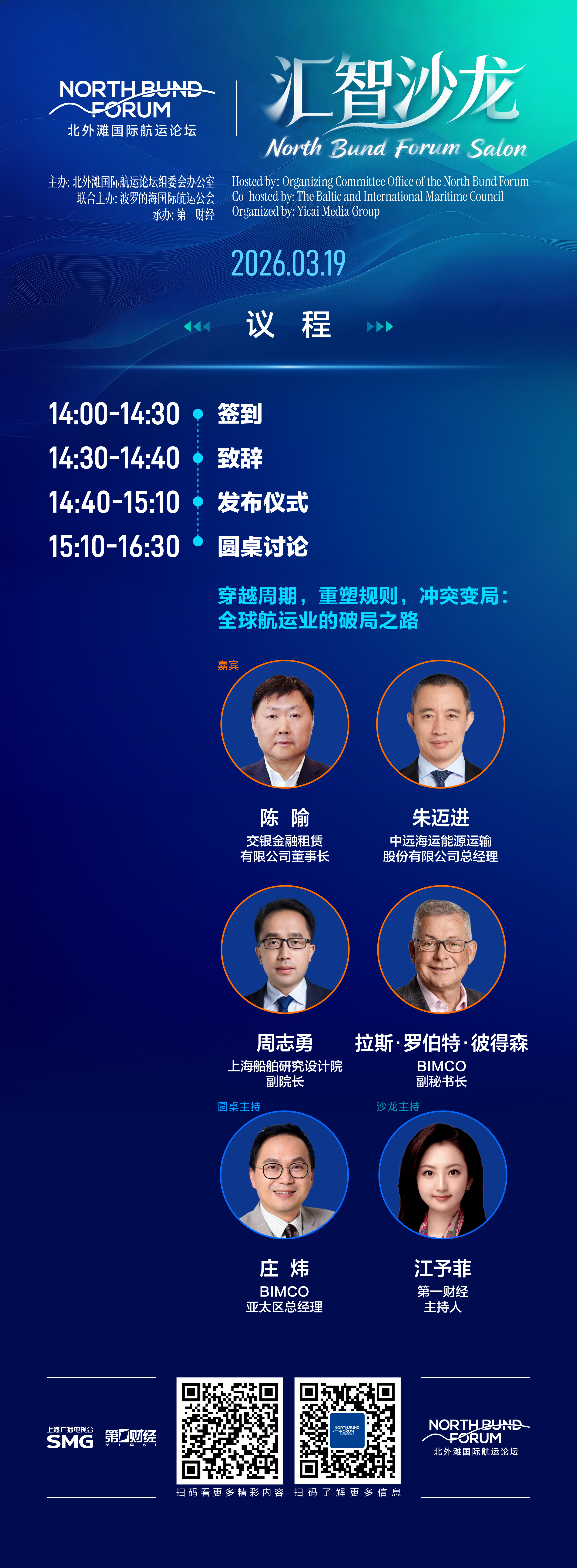 与此同时,每一期“汇智沙龙”的深度报道、完整节目及精彩内容将在北外滩国际航运论坛官网和第一财经网端“北外滩国际航运论坛·汇智沙龙”专题中呈现。思想的交汇,正在这里发生。